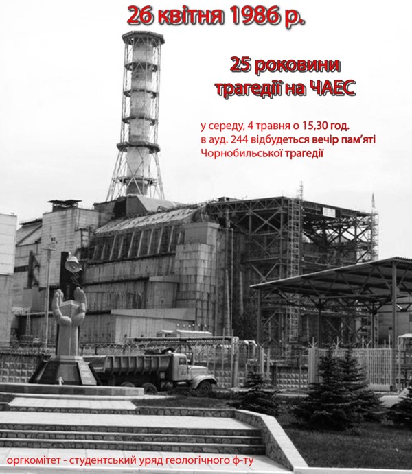 26 квітня!В пам’яті українського народу це день чорнобильського лиха, болю, суму, і забути це й викреслити із нашої пам’яті – неможливо. |