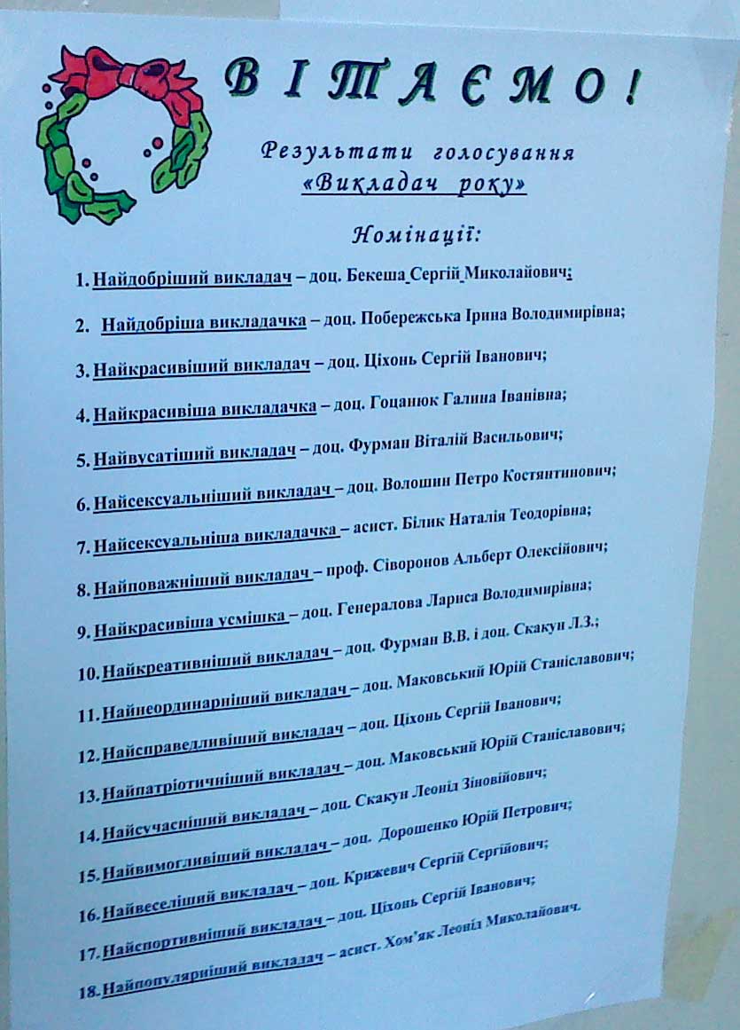 У цьому році студенти кількох курсів визначили переможців у номінаціях викладачів та виготовили газети, на яких зобразили навчання та побут практик