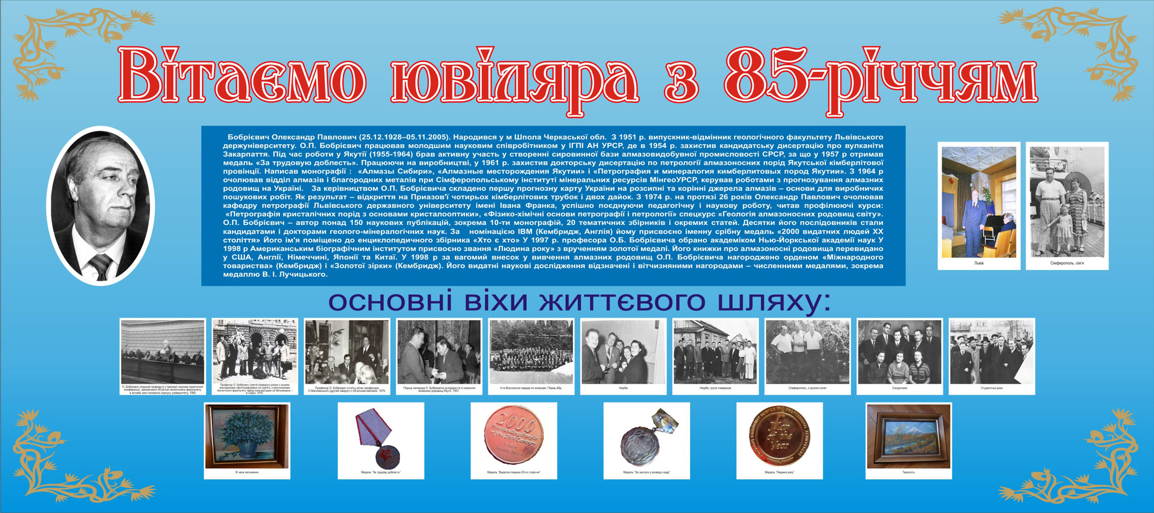 видатного вченого, доктора геолого-мінералогічних наук, професора, Олександра Павловича Бобрієвича