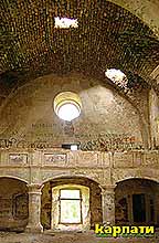 біля входу, розорені склепи, обдерті стіни).
