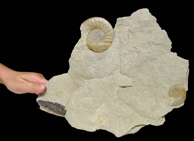 PERISPHINCTES AMMONITES AND MUSSEL ON ROCK SLAB - Bischberg, Germany