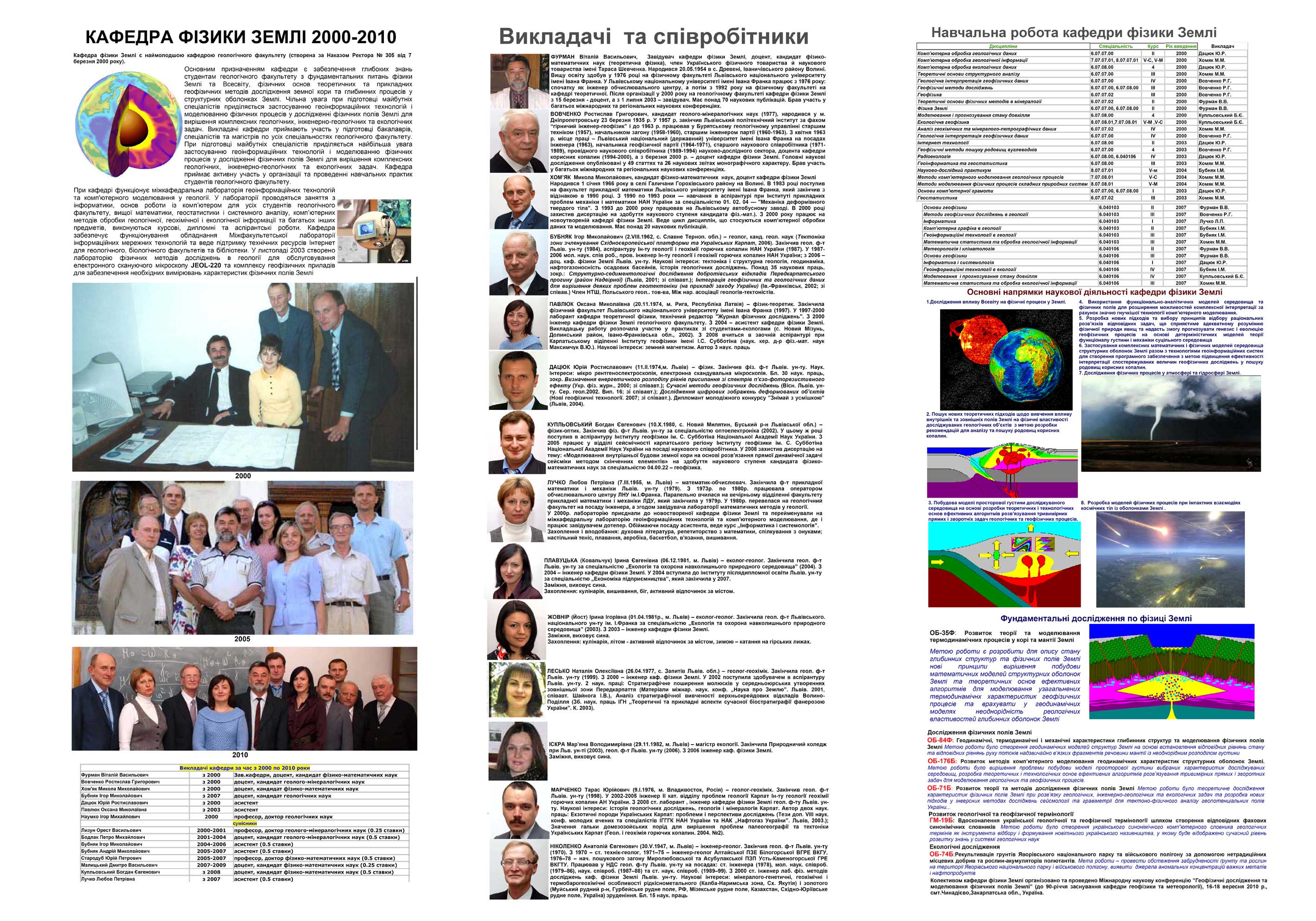 Презентаційні постери - кафедра фізики Землі за 16 років діяльності