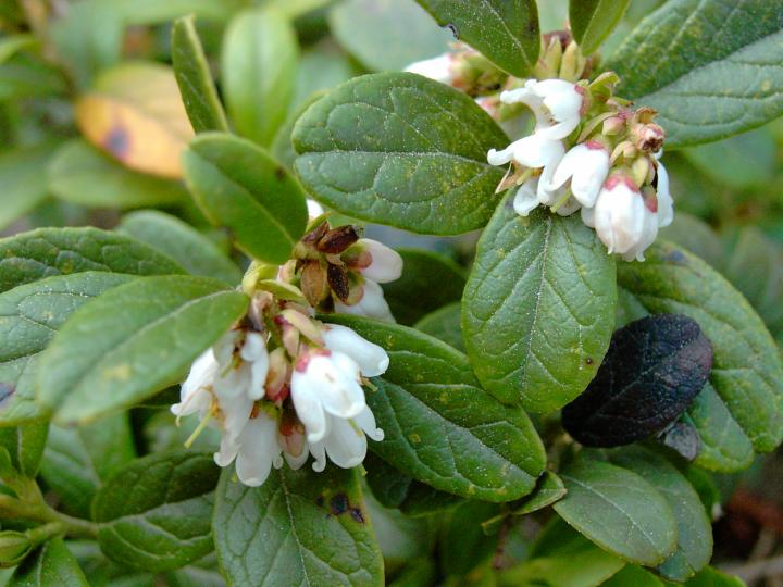 брусника способна поглощать воду не только корнями, но и листьями. Цветет