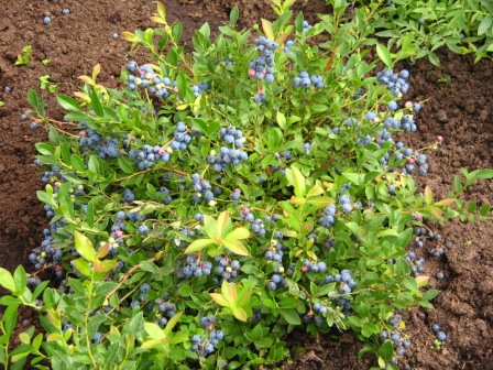 Посадка садовой голубики. Сажать ее рекомендуется в яму (глубина 60 см, диаметр 60-80 см), заполненную смесью верхового торфа и песка в соотношении 3:1. Если почва на участке умеренно или недостаточно увлажненная, то кусты высаживаются на 5-10 см ниже уровня поверхности земли. Во время жаркой засушливой погоды обязательно нужно контролировать насыщенность почвы водой.