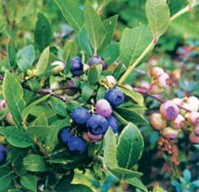 источник: по материалам Internet - источников На территории России в природе встречается один вид дикорастущей голубики, но она не нашла широкого распространения в культуре. В США и Канаде в естественных местообитаниях произрастает 26 видов, но селекционеры обратили внимание на голубику щитковидную, и в настоящее время в США насчитывается 45 ее сортов. В последнее время они находятся в центре внимания российских садоводов-любителей. В отличие от дикорастущей голубики в плодах культурной содержится намного больше витамина Р и каротина. Красивый вид и приятный кисло - сладкий вкус сравнительно крупных ягод, неплохой урожай (с растений 6—8 летнего возраста — до 2—2,5 кг) характеризуют эту ягодную культуру. Девяносто лет назад из дикого вида щитковидной голубики в Северной Америке был отобран сорт Брукс. На следующий год из другого вида голубики низкой получен другой сорт — Рассел, слаборослый, морозоустойчивый, раннеспелый. Скрещивание обоих сортов дало хорошие результаты, тогда подключили третий вид — голубику южную. В результате скрещиваний получены ценные сорта: Пионер, Кэботи, Катарина, Рубель. В условиях Подмосковья наиболее перспективными сортами североамериканской голубики являются: Дпкси, Джерси, Ранкокас, Уэймут. Эти сорта ежегодно плодоносят, образуя крупные многоягодные кисти, удовлетворительно зимуют. Величина ягоды достигает размера мелкоплодной вишни. Большинство сортов можно выращивать и в других районах средней полосы России. Они ежегодно цветут и плодоносят. Однолетние побеги вырастают из корневой шейки. Прирост взрослых разветвленных ветвей невелик. В первые годы жизни на них образуется лишь немного мелких ягод. Цветковые почки закладываются летом на однолетних побегах и на однолетних приростах в верхней части старых ветвей. Цветковые почки толще и округлее ростовых. Сформировавшись летом, весной будущего года они развиваются, образуют цветоносы с 7—12 цветками. Позднее из соцветий образуются большие кисти ягод. Цветение продолжается 3—4 недели, начиная со второй половины мая, а созревают ягоды с середины июля до конца сентября. Первые ягоды ранних сортов можно есть обычно на 50—60 день после начала цветения. Зрелые ягоды держатся на кусте 12 дней. Голубика требовательна к почве. Наиболее пригодны торфяно-песчаные и торфяно-суглинистые почвы грубого механического состава, пористые, хорошо дренированные, кислые с РН = 4,3—4,8 и содержанием гумуса не менее 3,5%. Глубина посадочной ямы 40х50 см, в нее вносят полусгнивший навоз и минеральные удобрения (азот-фосфор-калий 1:2:1), для подкисления почвы добавляют не- много серы. Растения сажают на расстоянии 125 см в ряду и 250 см между рядами. После посадки почву мульчируют, насыпая слой опилок 8—15 см. Уход состоит с начала весны до августа в периодическом выпалывании сорняков и рыхлении почвы не глубже, чем на 3—5 см, иначе можно повредить корни. Подкормки проводят весной и во второй половине или в конце июня. Минеральные удобрения (аммиачную селитру, фосфоритную муку и сульфат калия) разбрасывают вокруг растения в радиусе 15—30 см и дальше, насколько простираются корни. При недостатке бора и марганца (что проявляется в «голубении приростов») вносят буру или 2—3 раза опрыскивают 15%-ной борной кислотой с интервалом 10—12 дней, начиная с первых признаков «голодания». Недостаток мар