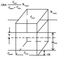 підйом гори на шар потужності ∆h (збільшення потенціальної енергії ∆Eпот.) призводить