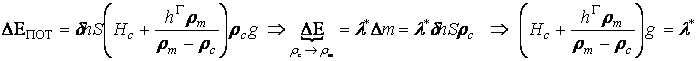 затратою відповідної на це енергії, або роботі сил тиску → А=Fтиску∆h: ρgН = σ, де σ -границя текучості матеріалу літосфери (у термінах самоорганізації