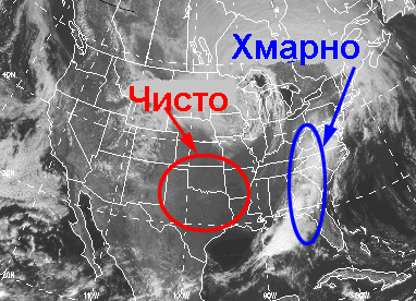а над Південними Рівнинами - безхмарне небо (обведене червоним кольором).
