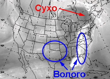 вологість. Видимі білі області на зображенні водяної пари майже точно