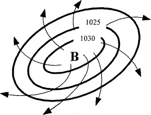 повітря. Найвищий тиск - у центрі антициклону й убуває до периферії. Антициклон
