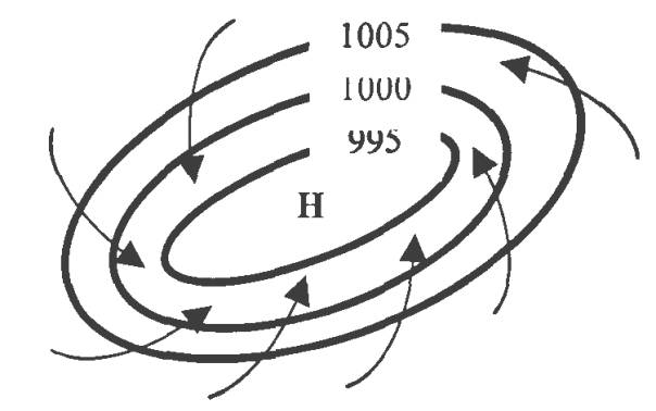 стан. Вітер в антициклоні дме, огинаючи центр антициклону, у Північній