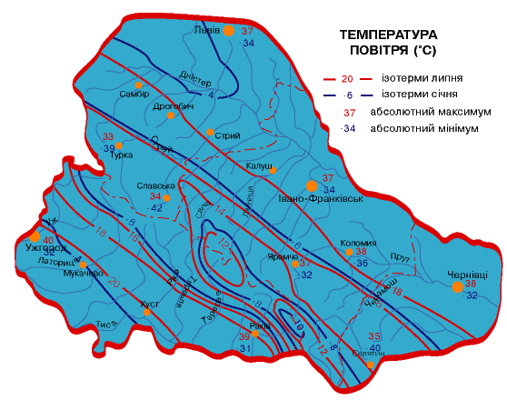 у Прикарпатті. З підняттям угору на кожні 100 ж температура знижується