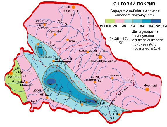 снігу. Число днів із снігом, а, значить, тривалість і потужність