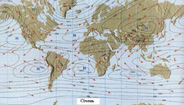 • Зони тиску і вітру у нижній тропосфері та біля земної поверхні.