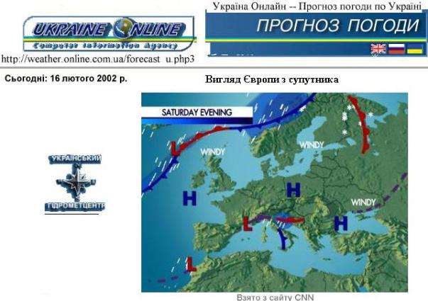 Інформаційні ресурси кліматології та метеорології. Прогноз із Інтернет.