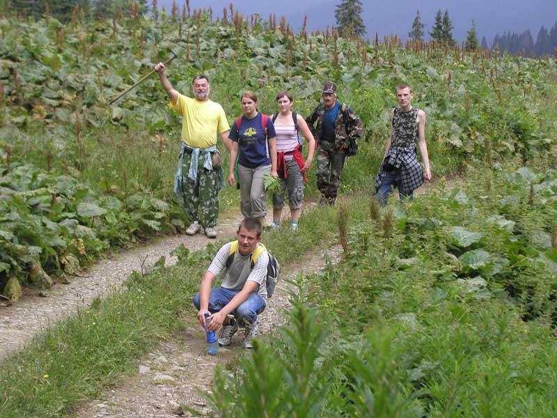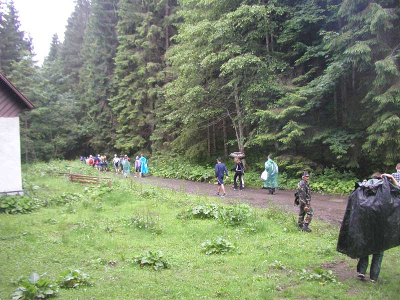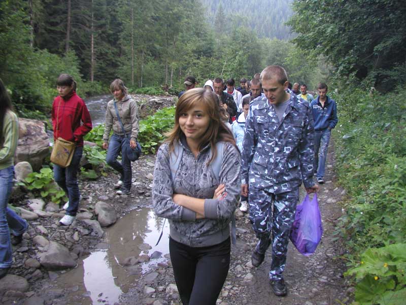 Ми спробували підримати традицію студентів геологічного факультету. Так само як у 2004, 2005, 2006, 2007, 2008 підчас проходження практики у Квасах у 6 раз 7 липня 2009 ми хотіли піднятись на г. Говерлу за маршрутом із Богдана разом із 69 студентами 1-го курсу та 4 викладачами: доц. Фурман В.В., доц. Ціхонь С.І., ас. Хом'як Л.М., ас. Козак Ю.З. Але погода створила нам перешкоду і ми змогли піднятись лише до хребта між Бребенескулом і Говерлою, де починає свій біг р. Біла Тиса... Далі іти було небезпечно, оскільки пряма видимість через туман - 5-10 м. |