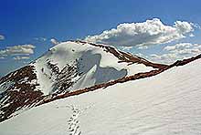 Приблизно через два кілометри після перевалу, перед різким поворотом на південь, треба зійти з дороги в напрямку схід-схід-північ. Нетривалий підйом — і ви вже опинилися на де-не-де порослому ялівцем найпологішому західному схилі Петроса. Знизу вершини не видно, мандрівник просто піднімається вгору, і в якийсь момент виявляє, що до неї лишилося метрів сто... Від перевалу до вершини неспішним темпом іти дві години...
